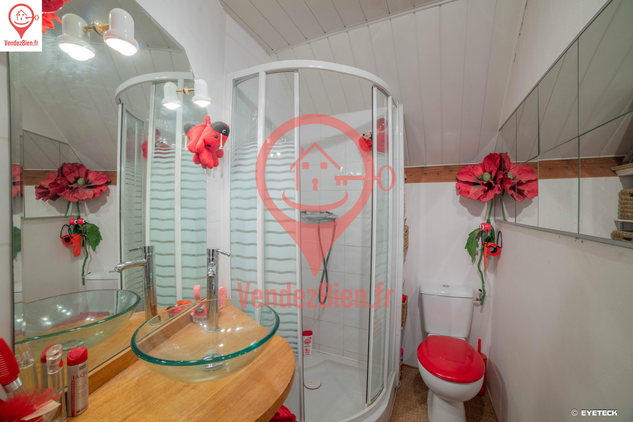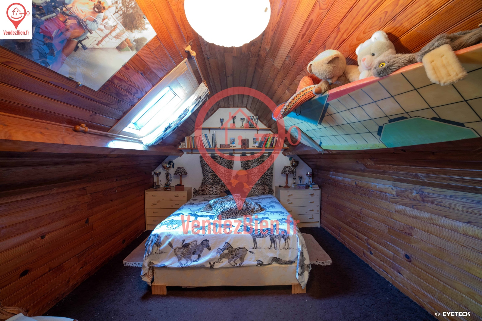À l’étage : Trois chambres, un bureau, une salle d’eau.