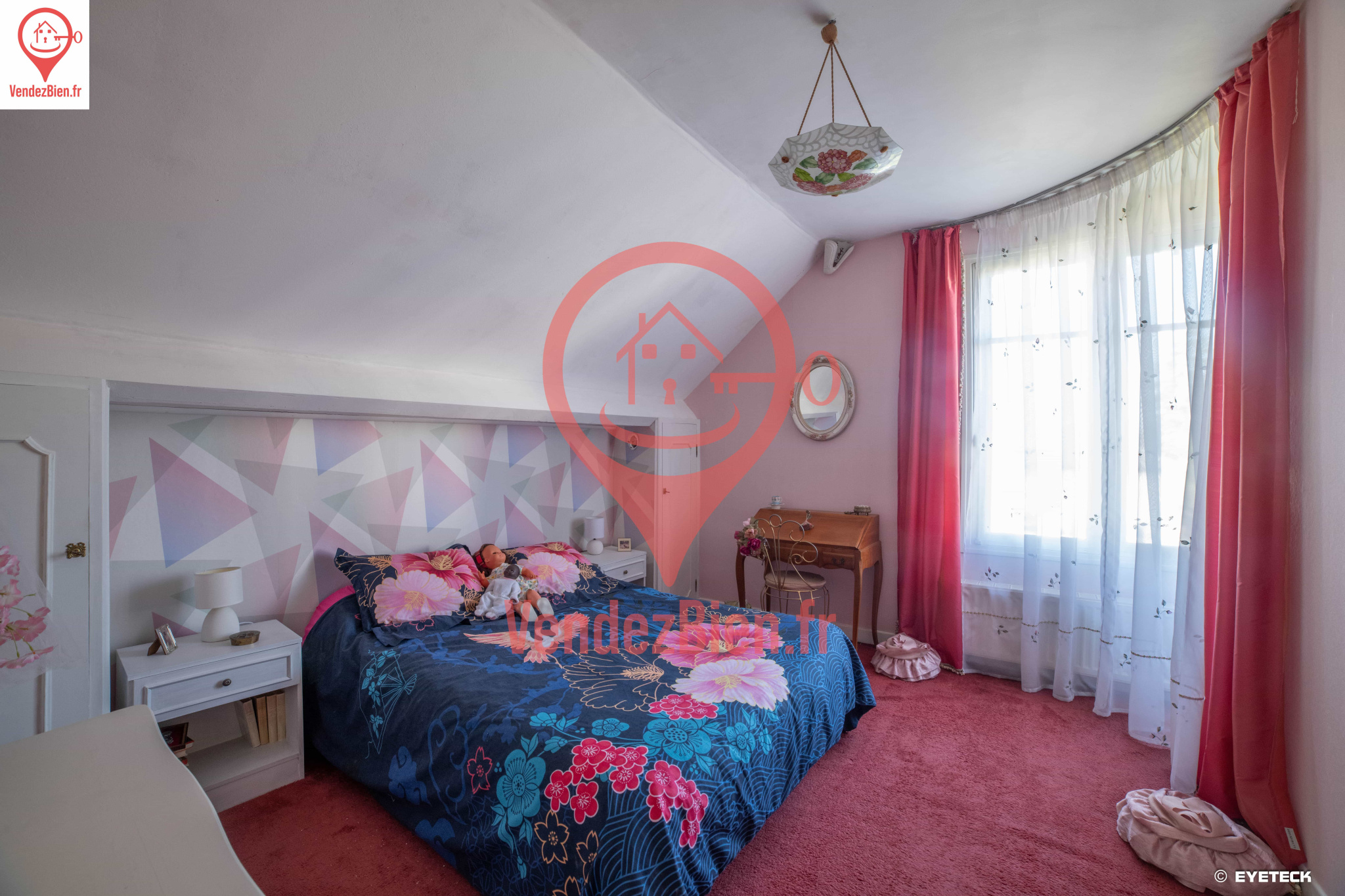 À l’étage : Trois chambres, un bureau, une salle d’eau.